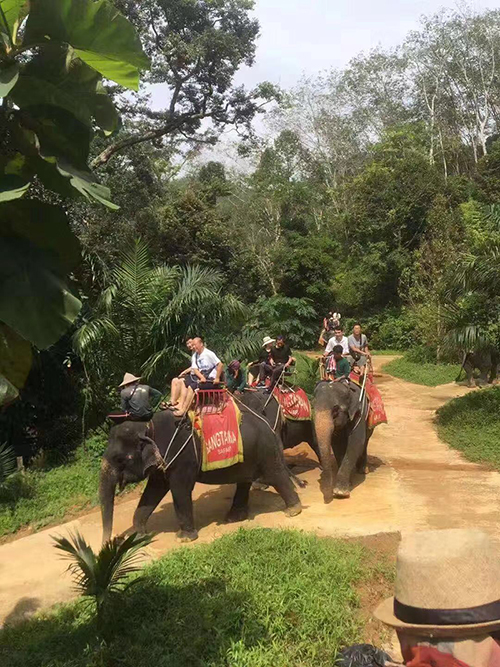 第二天一早,出发去森林骑大象,满怀期待骑大象往森林深处走去,忽然间发怒大象宝宝把大家吓坏了,还好有惊无险。之后前往美丽的攀牙湾国家公园--远观007岛,随后乘皮划艇游览了一番:探岛中洞天。晚上去看了泰国特色——国际人妖表演!哇塞,人妖们是如此妖娆、性感、美丽。Big按耐不住去摸了一把,200铢铢哦,真叫一个过瘾。